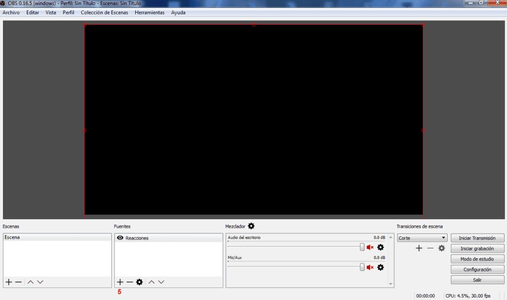 5. Agrega en tu Dashboard una fuente de trasmisión.